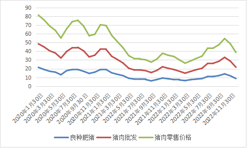 据监测,12月末,吉首市良种猪收购价格17.4元/公斤比年初每公斤提高2.4元,上涨62.6%,比去年同月每公斤提高0.9元,上涨5.5%。吉首农贸市场本地猪肉价格17元/500g,比年初每斤提高3.5元,上涨25.9%,比去年同月每斤提高1.5元,上涨9.7%。仔猪价格15元/500g,比年初每斤提高0.6元,上涨4.2%,比去年同月每斤下跌1元,下降6.3%。预计春节前期生猪、猪肉价格会有所上涨,但涨幅空间不会太大。2023年生猪价格会有所上涨。