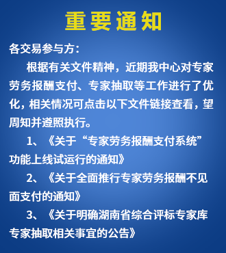 关于明确湖南省综合评标专家库专家抽取相关事宜的公告