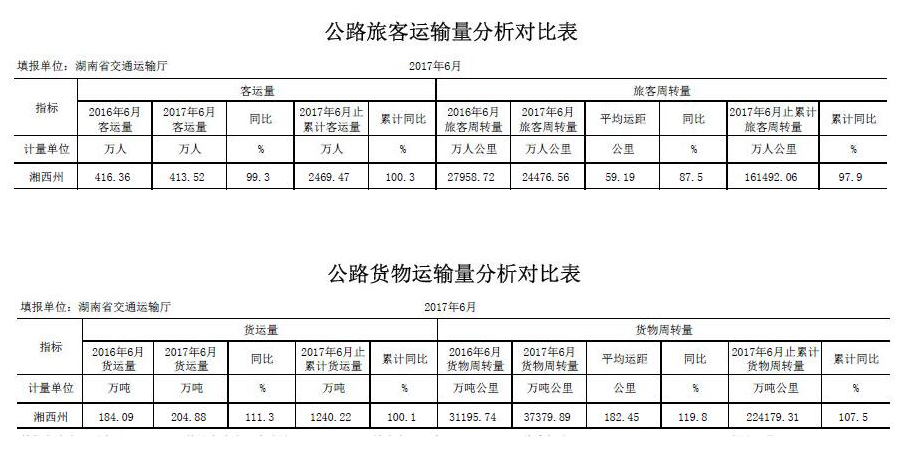 2017年6月公路货运/旅客运输量分析对比表