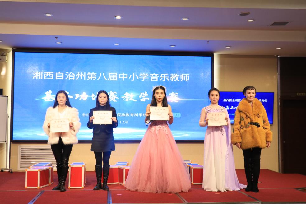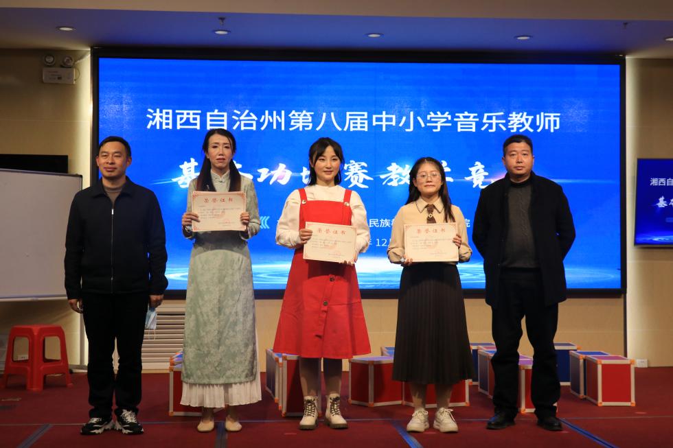 12月16日,经过四天激烈角逐,湘西州第八届中小学音乐教师基本功比赛、教学竞赛圆满落下帷幕。州教体局党组成员、副局长、总督学刘修洪,州教体局副局长向仍淼,州教体局党组成员、副局长王耀宗出席闭幕式并为获奖单位和选手颁奖。
