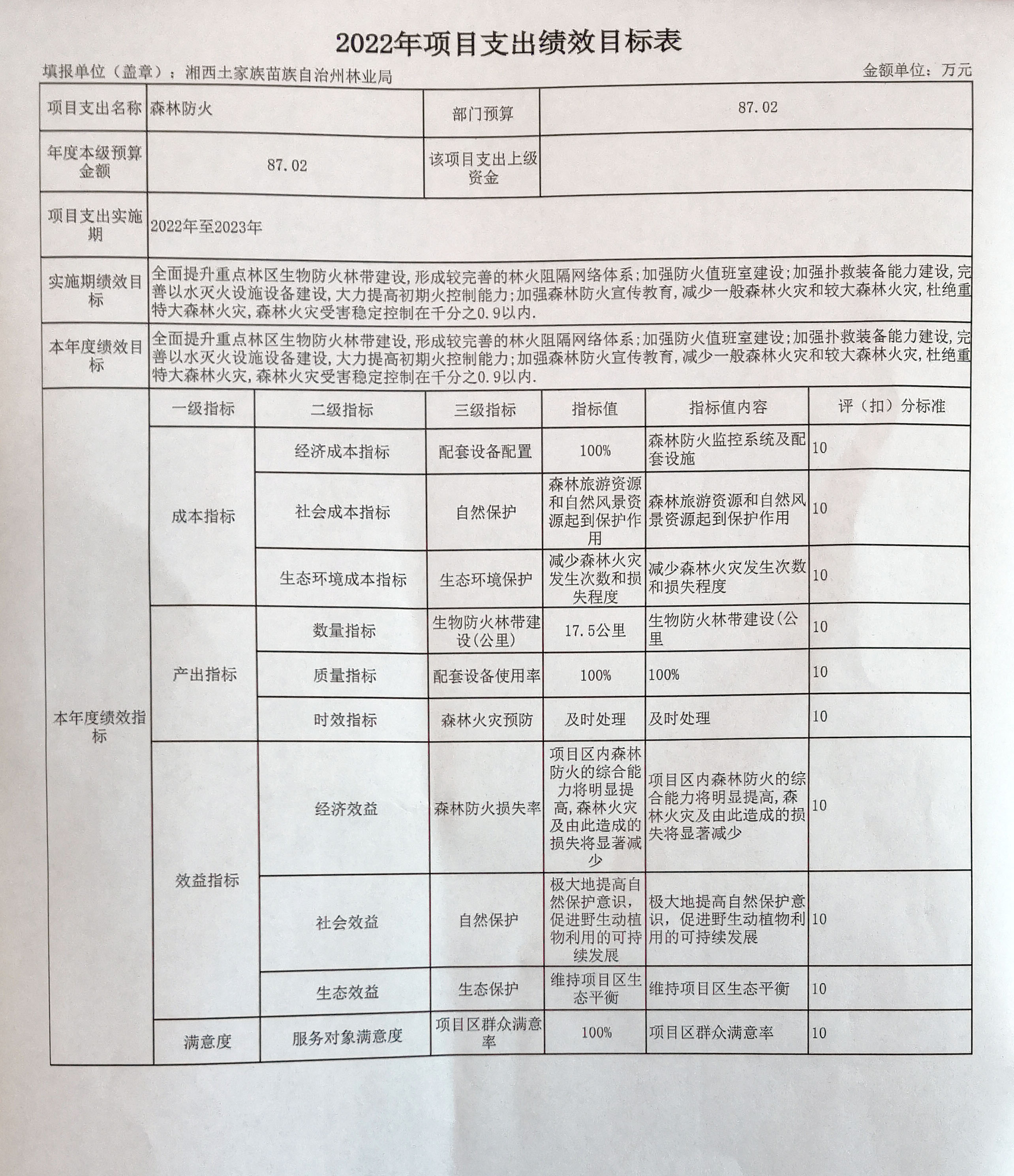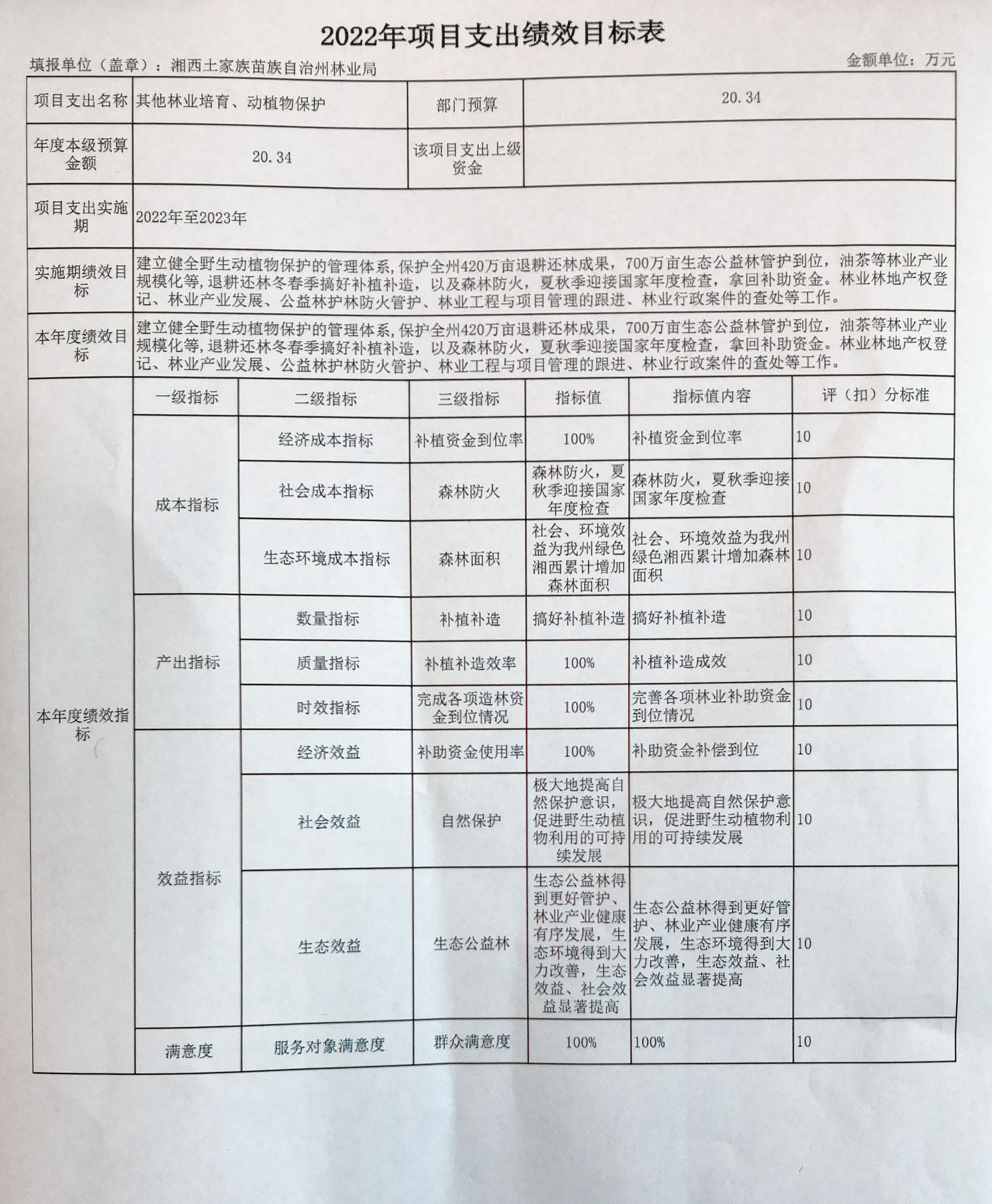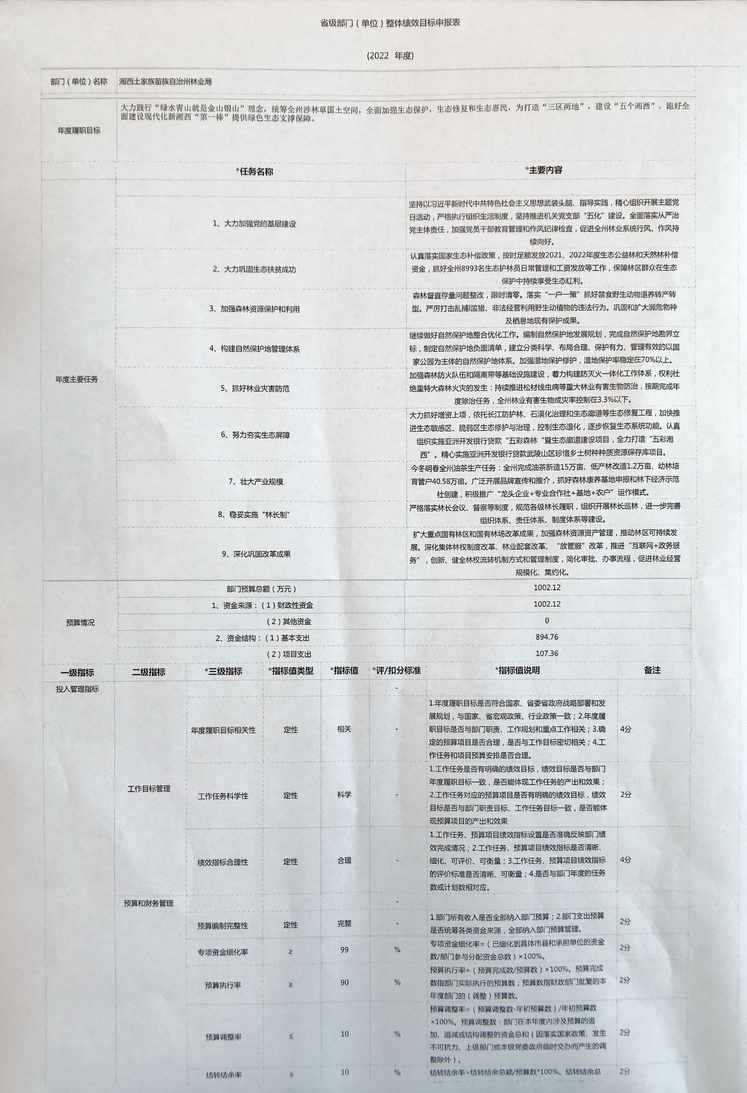 州林业局2022年州直预算部门整体及项目绩效目标公示