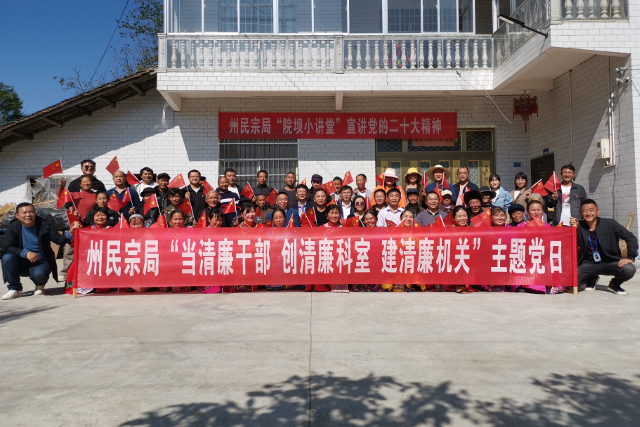 11月3日,州民宗局组织党员干部到龙山县竹柯村开展“当清廉干部 创清廉科室 建清廉机关”主题党日活动。通过召开院坝会、集中宣讲、文艺表演、知识竞答、面对面对接交流等群众喜闻乐见的形式,宣讲党的二十大精神,传播清廉文化,推动清廉乡村创建,助力乡村振兴。(局清廉办)