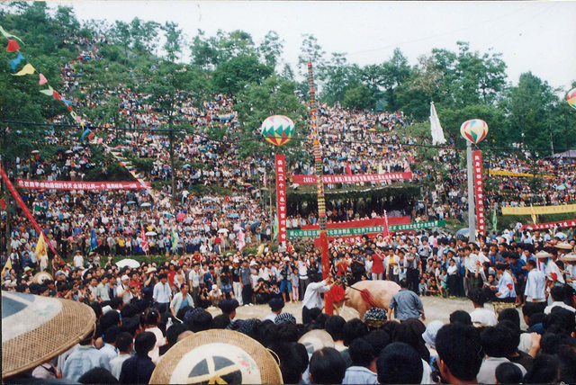 最为忙碌的要算那小伙子。他们不停地在人群中穿梭,看见前面有姑娘,便快步赶上,不顾面子,直奔主题,谈得拢就谈,谈不拢就散,无需像城里人谈对象那样,要一段时间感情“酝酿”。也有“含蓄”一点的,那就是小伙子看上了哪位姑娘,便偷偷来到她的背后,摘下姑娘的头帕,转身挤出人群,往山上跑去。姑娘如果跟着追去,旁边的人就会笑着说:“有搞头!”若是不追,也有人会叹惜地说:“没望头。”