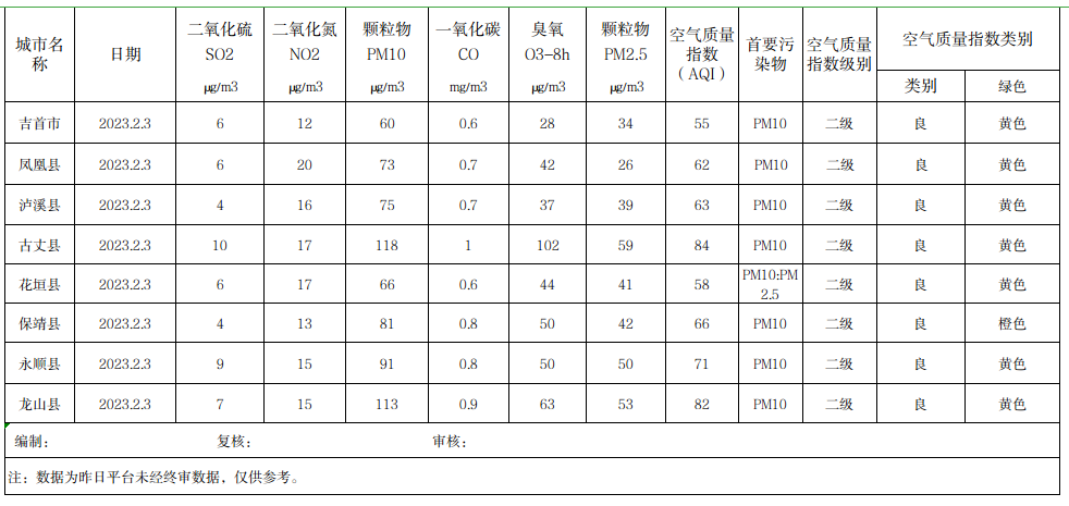 2023年2月3日湘西州空气质量日报数据一览