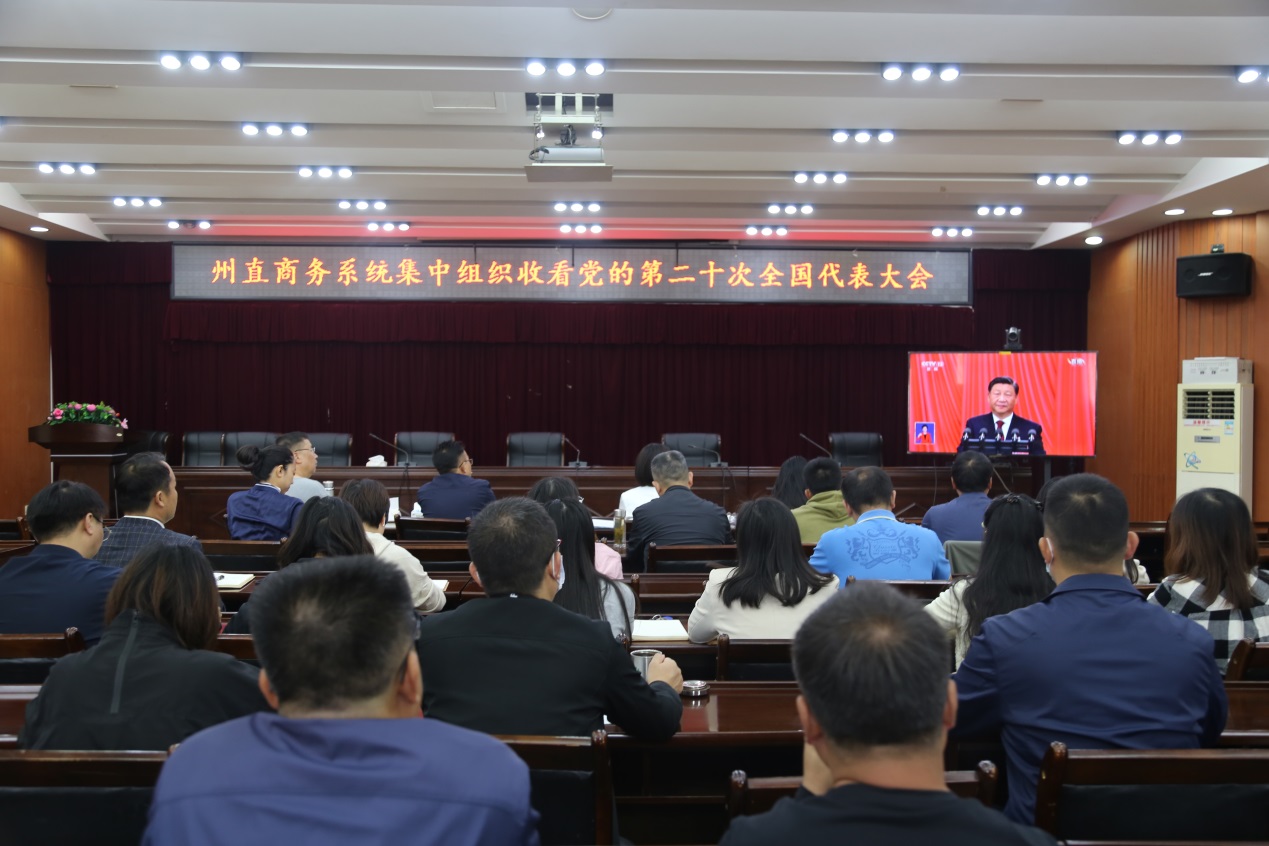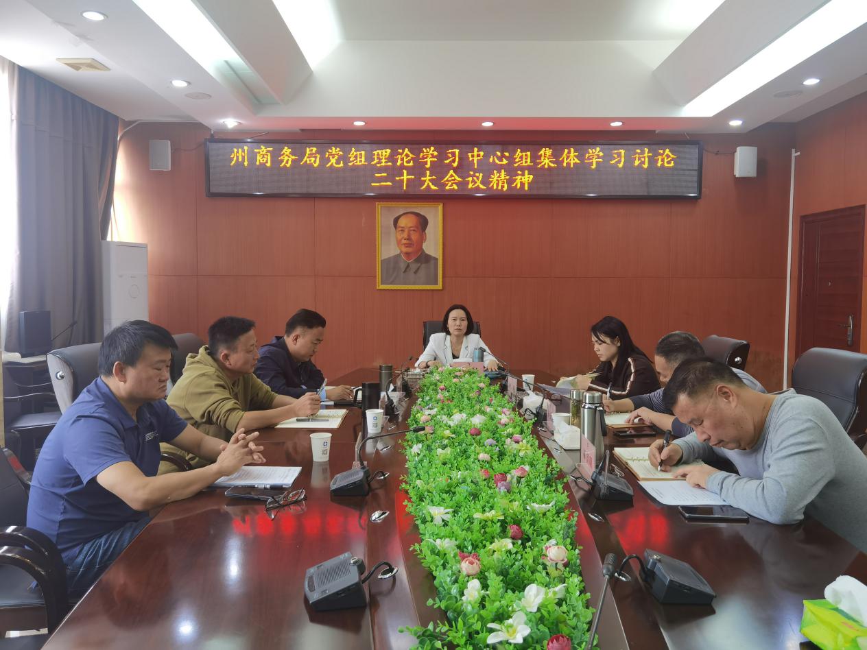干部职工认真聆听了习近平同志代表第十九届中央委员会向大会作的报告。开幕会结束后,杨凌主持召开州商务局党组理论学习中心组集体学习,学习讨论党的二十大会议精神。会议强调,全体商务干部要提高政治站位,原原本本学习习近平同志所作的报告,通过集中研讨、培训辅导、线上学习等方式,深刻理解和准确把握党的二十大精神实质,切实把思想和行动统一到中央决策部署上来。要全面贯彻习近平新时代中国特色社会主义思想,深刻领悟“两个确立”的决定性意义,增强“四个意识”、坚定“四个自信”、做到“两个维护”。在新的伟大征程上,全州商务部门要紧紧围绕“三区两地”发展定位和“五个湘西”主攻方向,弘扬伟大建党精神,自信自强、守正创新、勇于担当、勇毅前行,积极加快商务和开放型经济工作发展,奋力为建设现代化新湘西作出新贡献。