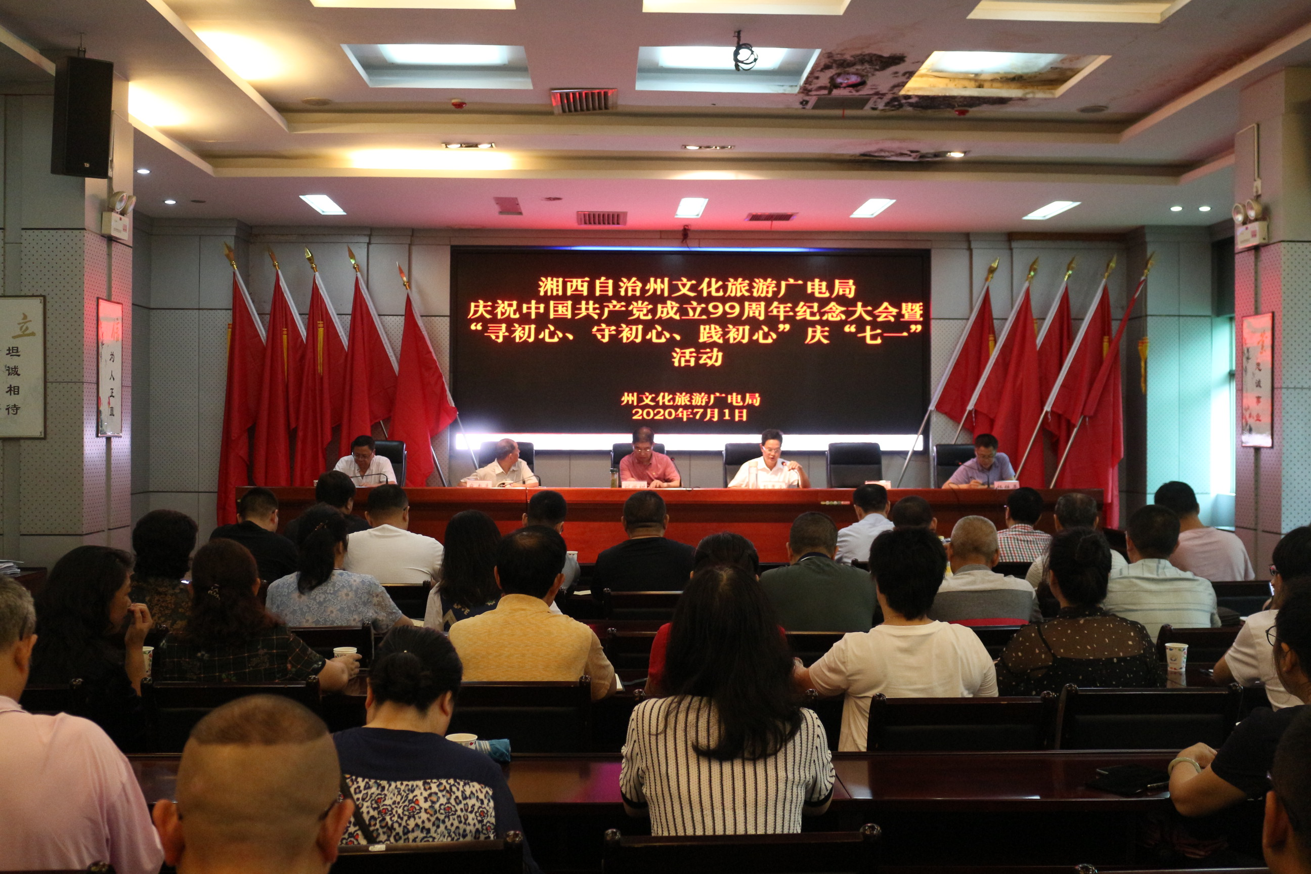 7月1日,正逢建党99周年纪念日,湘西土家族苗族自治州文化旅游广电局举行“寻初心、守初心、践初心”庆“七一”纪念建党99周年活动,全局党员干部、局机关党委委员、局管理各单位党政主要负责人一起纪念建党99周年。