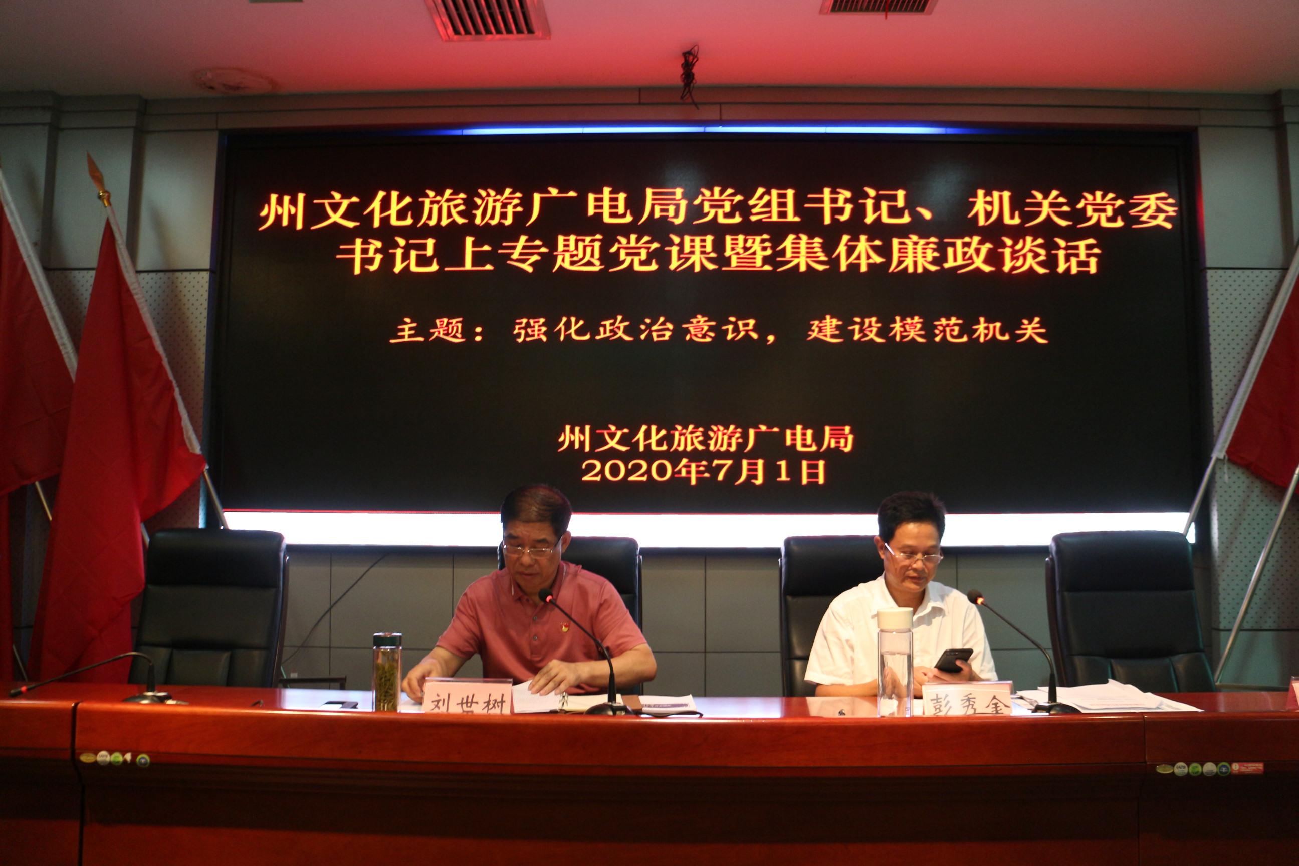 局党组书记、局长、局机关党委书记刘世树以“强化政治意识、建设模范机关”为主题,为全体党员干部上了一堂生动的主题党课。刘世树在党课中强调:政治问题,任何时候都是根本性的大问题,讲政治必须坚持党的领导,要把握好政治学习、政治身份、政治意识、政治立场、政治规矩、政治责任“六个关键”,突出政治统领、责任担当、学习教育、组织队伍、廉洁自律、工作成效,全局系统要坚持问题导向和目标导向相结合,把解决工作中的突出问题作为创建模范机关的重要任务,把解决问题的成效作为模范机关的评价标准,使创建模范机关取得实实在在的效果,为加快我州生态文化旅游产业转型升级,为推动生态文化旅游产业实现新一轮大发展、大突破而努力奋斗。