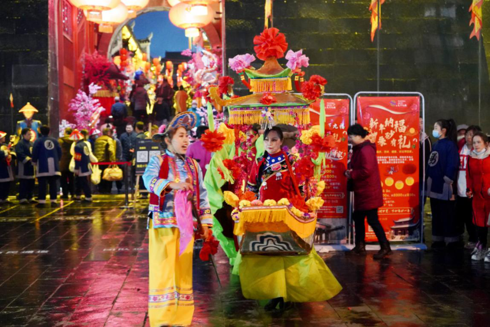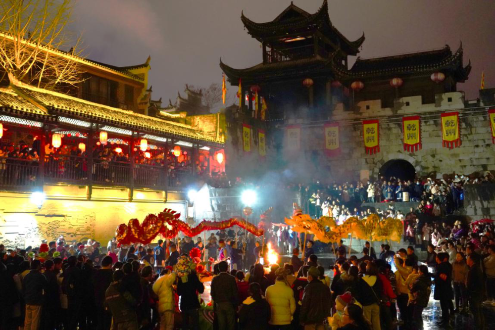 辛丑正月十五,元宵佳节。湖南省湘西土家族苗族自治州吉首市乾州古城景区当天活动精彩丰富,引钱龙、逛龙城、品元宵、猜灯谜、3D灯光秀、乾州春会(舞龙、花灯、蚌壳舞、夫妻观灯、财神纳福、放河灯)等一系列活动,吸引大量游客观赏游玩。
