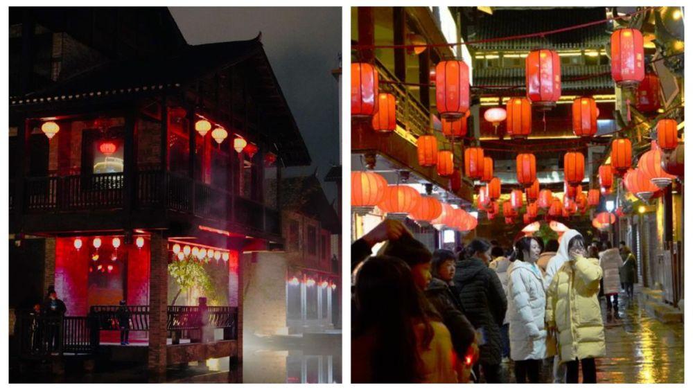 夜幕降临,乾州古城被无数的大红灯笼点亮,古城在夜色和灯光的装饰下,流光溢彩,美不胜收