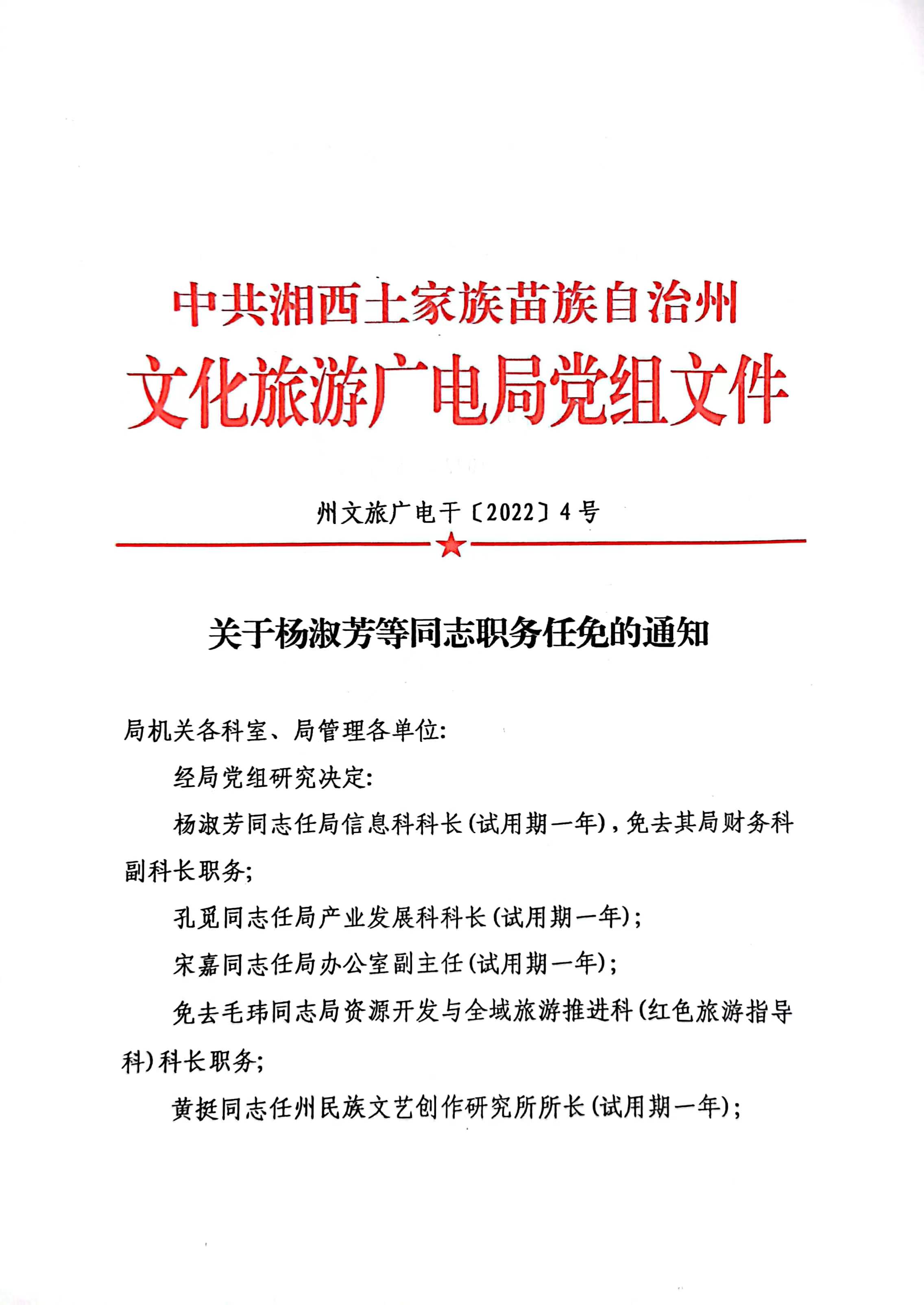 关于杨淑芳等同志职务任免的通知