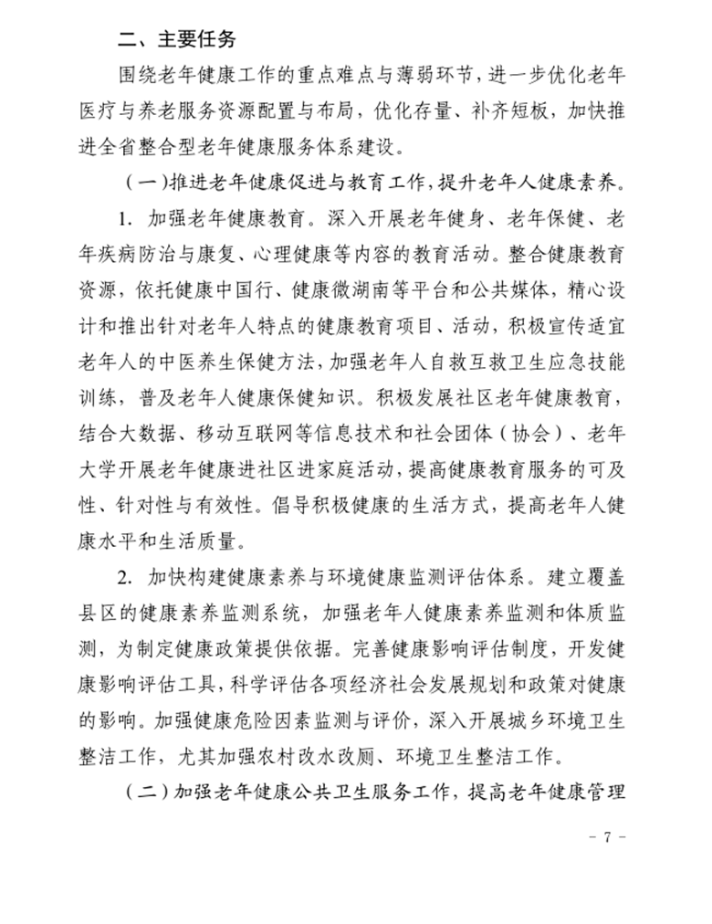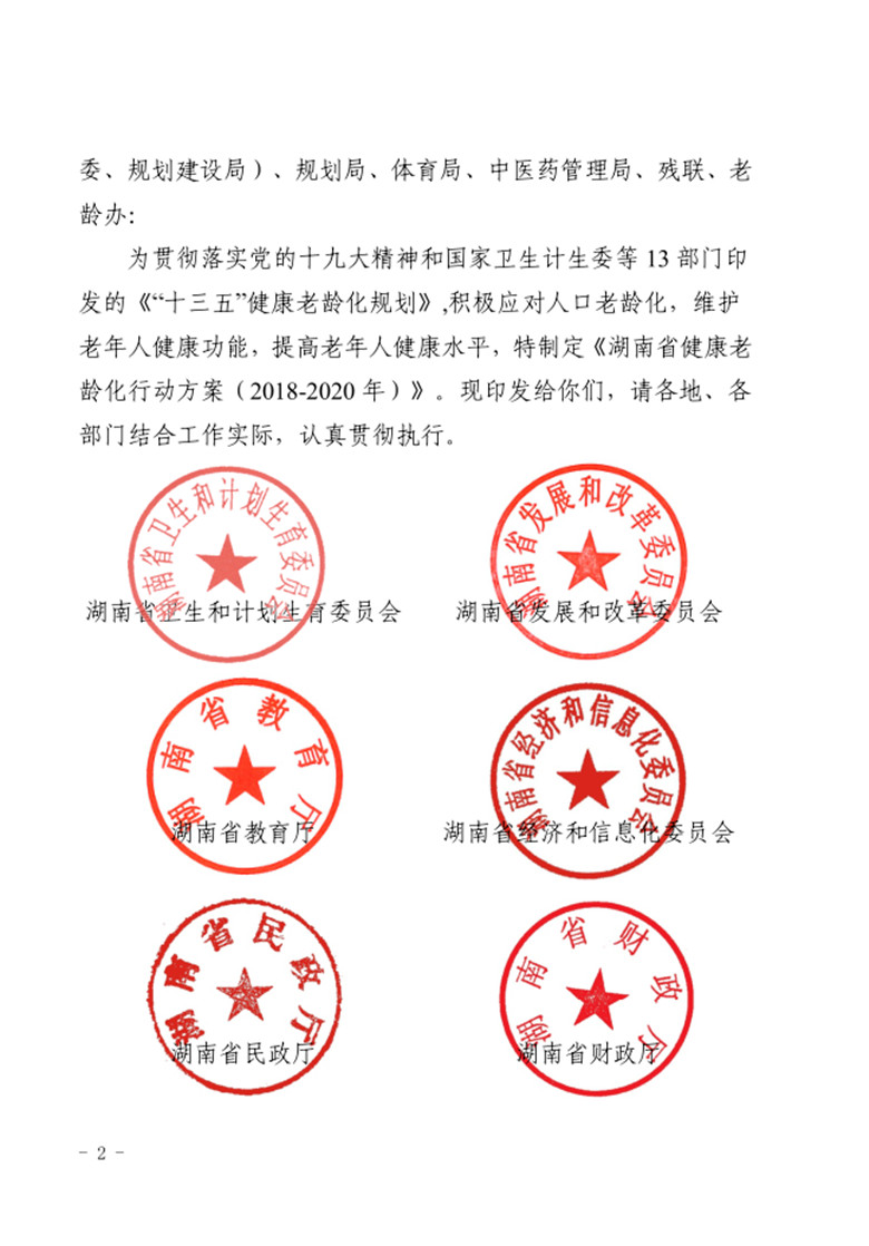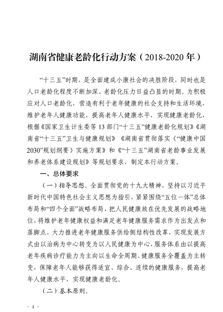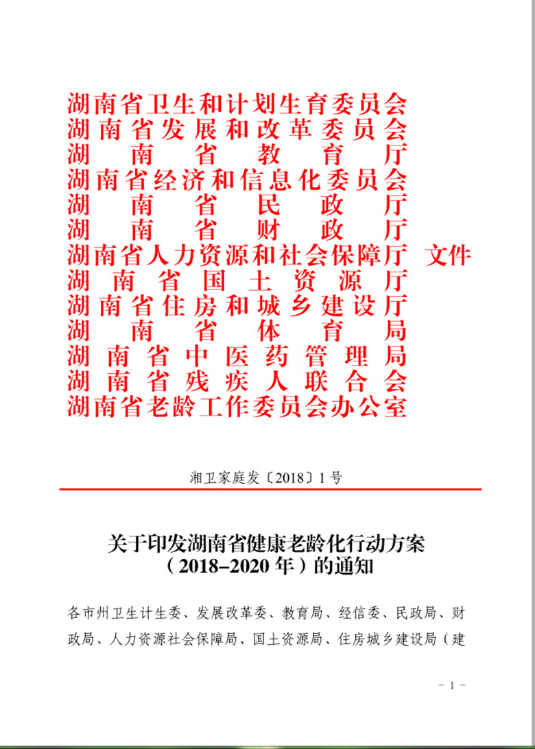 关于印发湖南省健康老龄化行动方案 (2018-2020 年)的通知