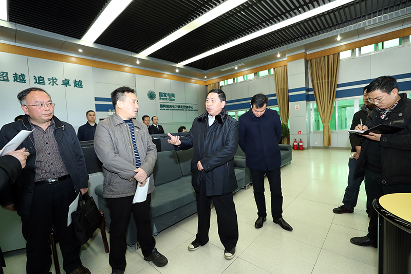 1月27日至28日,州委常委、常务副州长向恩明带领州直部门相关负责人到吉首市、凤凰县现场检查防冻抗灾工作。图为1月27日,向恩明(中)一行来到国网湘西电力公司指挥中心检查全州电力运行情况。(州人民政府网 周兴云 摄)