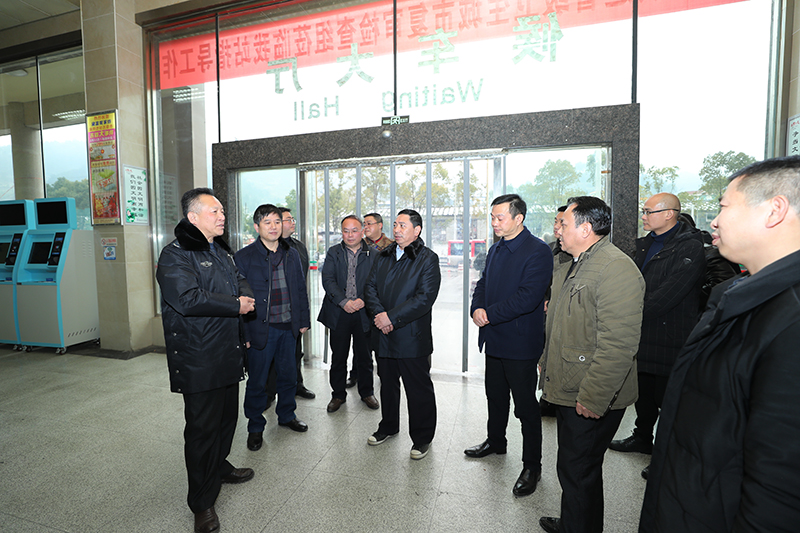 1月27日至28日,州委常委、常务副州长向恩明带领州直部门相关负责人到吉首市、凤凰县现场检查防冻抗灾工作。图为1月27日,向恩明(中)一行来到吉首市汽车西口站检查汽车客运安全运行情况。(州人民政府网 周兴云 摄)