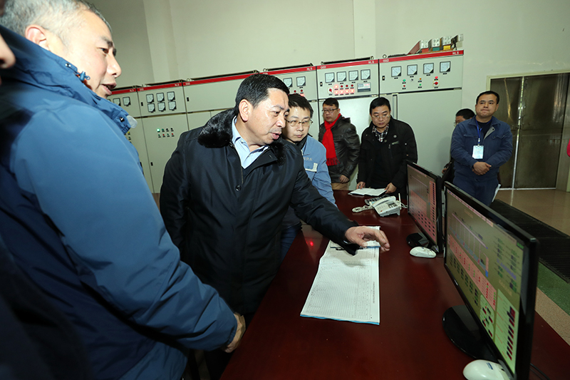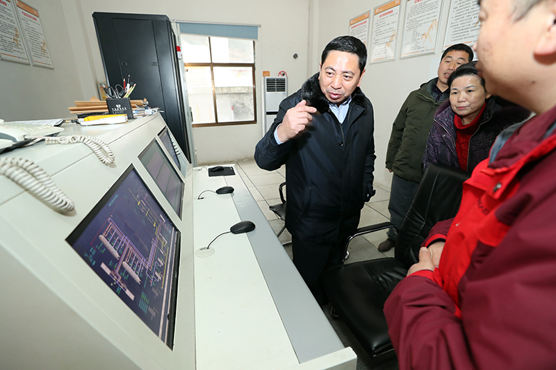1月27日至28日,州委常委、常务副州长向恩明带领州直部门相关负责人到吉首市、凤凰县现场检查防冻抗灾工作。图为1月27日,向恩明(左二)一行来到吉首市自来水公司检查吉首市自来水供应情况。(州人民政府网 周兴云 摄)