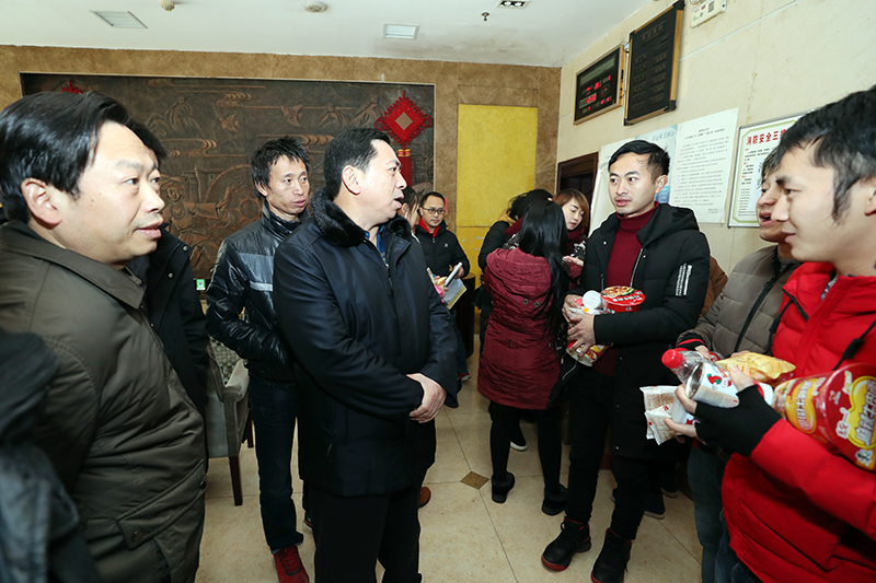 1月27日至28日,州委常委、常务副州长向恩明带领州直部门相关负责人到吉首市、凤凰县现场检查防冻抗灾工作。图为1月28日,向恩明(中)来到凤凰县滞留旅客临时安置点,与滞留人员交谈了解救助情况。(州人民政府网 周兴云 摄)
