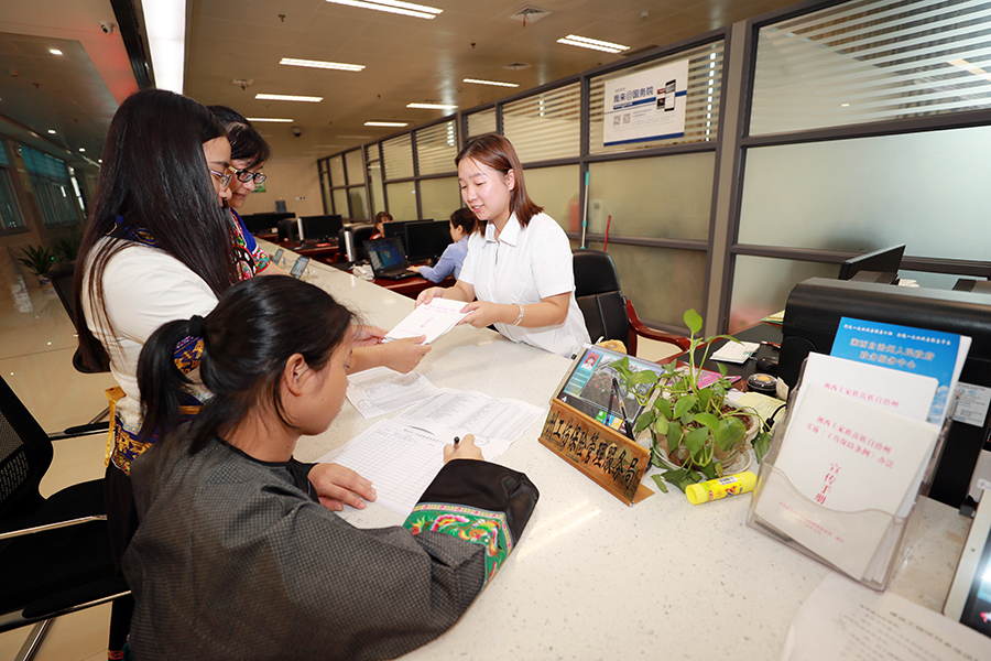 各族群众到湘西州政务大厅办事。周兴云 摄影