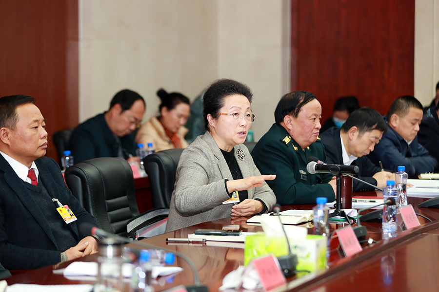 龙晓华在参加吉首代表团讨论时讲话。