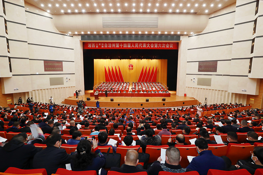 今天上午,湘西土家族苗族自治州第十四届人民代表大会第六次会议在武陵山大剧院隆重开幕。