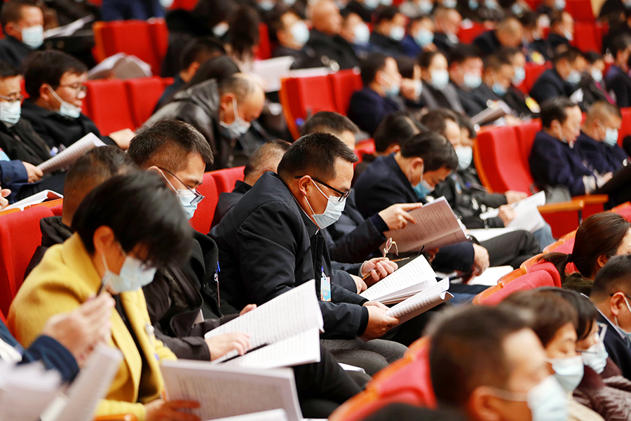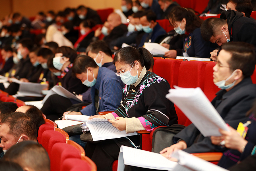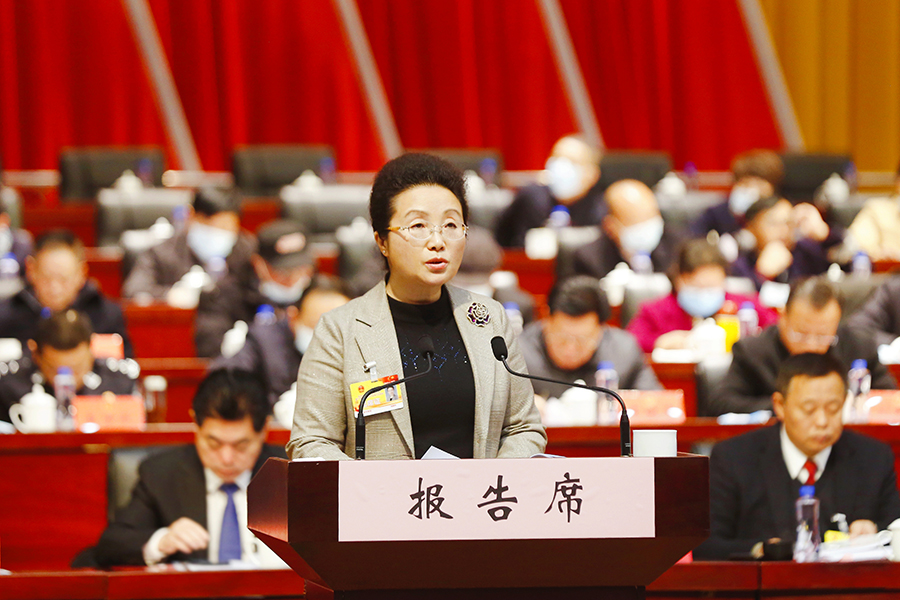 在热烈的掌声中,州长龙晓华代表州人民政府向大会作《政府工作报告》。报告分三个部分:“十三五”时期工作回顾;"十四五"时期主要目标任务和二〇三五年远景目标;2021年工作安排。