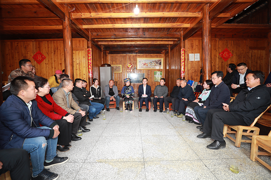 在村民张双清家整洁明亮的堂屋里,州政府办、州政府研究室及镇、村的党员干部和群众代表围坐一堂,学习热议党的二十大精神。组图州政府网 周兴云 摄