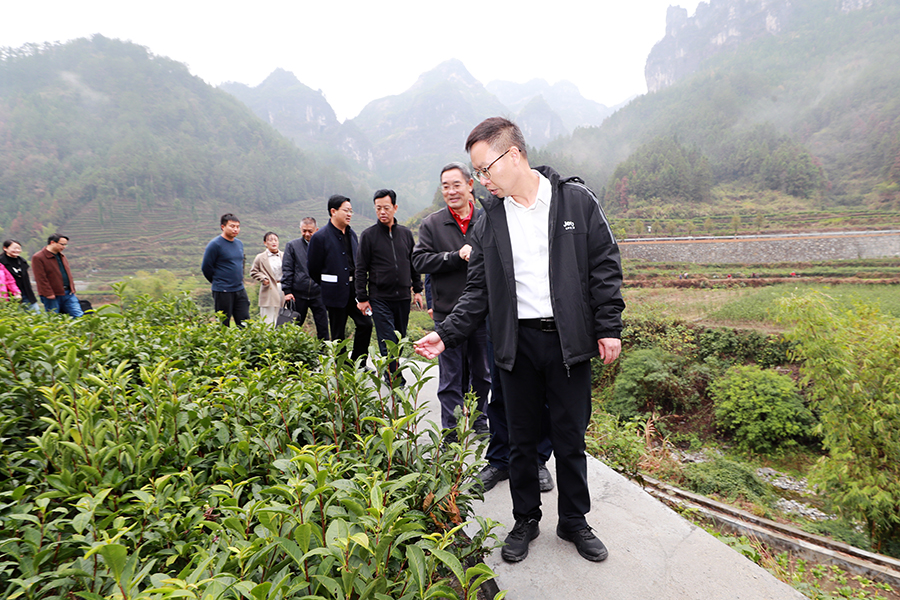 到保靖黄金茶茶园察看。湘西州政府网 周兴云 摄