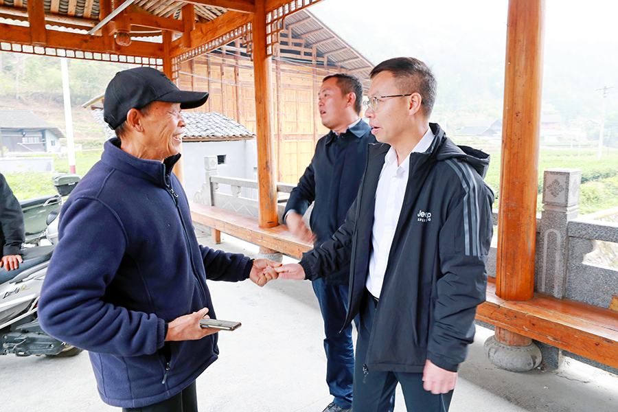 “您觉得村里变化大吗?”“大得很!房子改造漂亮了,通户路、围墙篱笆变得更自然了,有了风雨桥,闲时大家还可以休息纳凉,这都要感谢国家的好政策和工作队的帮助!”张奇华与施工的村民杨远安攀谈,希望他多支持村里的工作。张奇华指出,要强化规划引领,创新方式方法,实施好农村人居环境整治工作,努力把夯吉和夯沙打造成为乡村振兴的样板村、示范村。