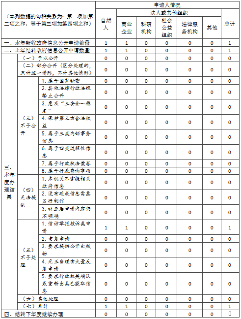 三、收到和处理政府信息公开申请情况