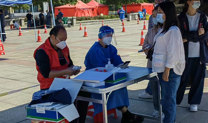 为深入贯彻习近平总书记关于“疫情要防住、经济要稳住、发展要安全”重要指示精神,10月15日,州乡村振兴局新冠肺炎疫情防控小分队6名志愿者,在世纪广场核酸检测点进行疫情防控核酸检测志愿服务活动,助力蔬菜社区开展疫情防控工作。活动中志愿者们主动配合,开展现场秩序维持、文明引导、解答咨询、身份录入等志愿服务。