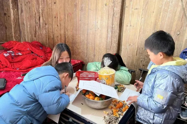 ▲1月30日,州信访局乡村振兴工作队与村干部入户走访,看望留守儿童,了解他们的生活及开学前准备情况。