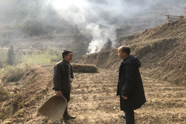 ▲1月31日,州信访局乡村振兴工作队走访村民返回路上,在郑家湾碰到村民在山上焚烧树干等。工作队爬上山后给村民宣传山林防火的重要性。通过宣传,进一步增强了村民的防火意识。