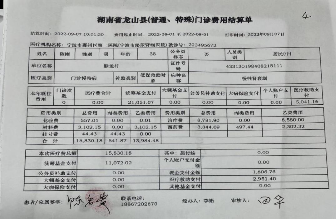 “一直以为医疗报销手续复杂,就算报下来也报不了多少钱,刚到窗口的时候就像个无头苍蝇,但在工作人员耐心办理服务下,一万多的费用只要自己出一千多,真的太感谢你们了。”陈刚的父亲陈启贵高兴的说到。身患慢性肾衰竭的参保人陈刚由于行动不便由父亲陈启贵代办医疗费用报销,陈刚购药的总医疗费用15830.18元,基本医疗报销11072.02元,医疗救助补助2951.40元,在基本医疗和医疗救助双重补助下合计报销了14023.42元,陈刚的父亲忍不住感慨到:“国家的政策真好,工作人员的服务也很热情细致。”此次报销通过特殊人群办事窗口办理,大大减少了特殊人群等待时间和经济压力,切实为特殊人群带来福利和温暖,收到群众一致好评。