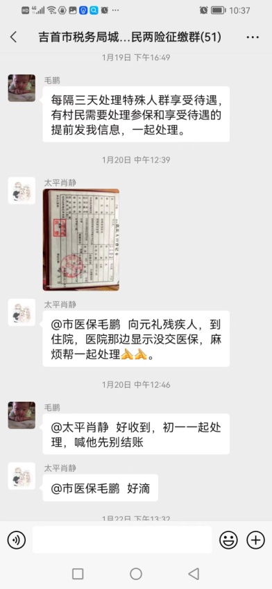 春节期间,吉首市医疗保障局积极落实值班值守制度,由领导带头,各业务骨干坐班值班,接听群众来电和办理医保业务,据了解,参保群众除了能够咨询办理生育保险业务,还可以通过致电值班电话或者关注“吉首市医疗保障局”微信公众号办理参保缴费、异地就医备案、停保登记等医保业务。春节放假期间,吉首医保为返乡群众、新生儿、贫困户等人群及时办理参保登记60余人,处理群众报销业务40余条,线上线下回复群众政策咨询300余次,坚持做到了只要群众有需求,春节放假也“不打烊”,以实际行动践行了医保为民的理念,将一片春暖花开送进了群众的心间。